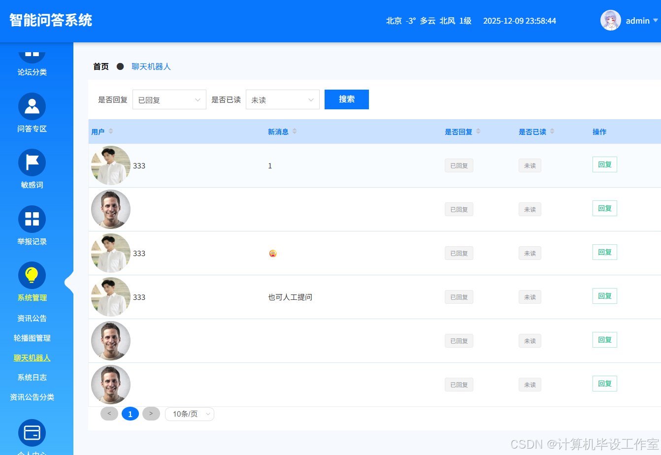 智能问答系统(源码+数据库+毕业论文一整套齐全)java开发springboot+vue框架,可做计算机毕业设计或课程设计
