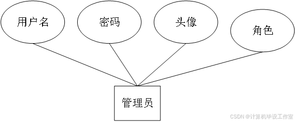 管理员实体包括用户名、密码、头像、角色四个实体,管理员实体图如图4-3所示。