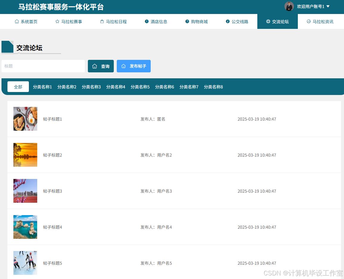 交流论坛管理:管理论坛帖子,增删改查、置顶、审核等)