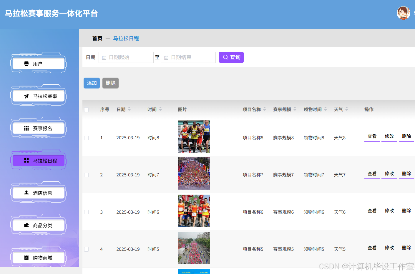 图5-3 马拉松日程模块界面图