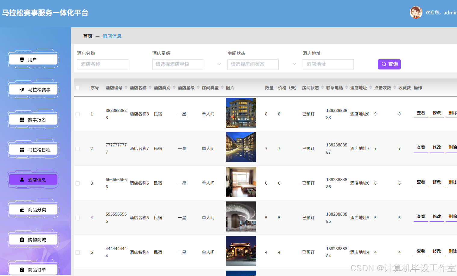酒店信息管理:管理平台内的酒店相关信息