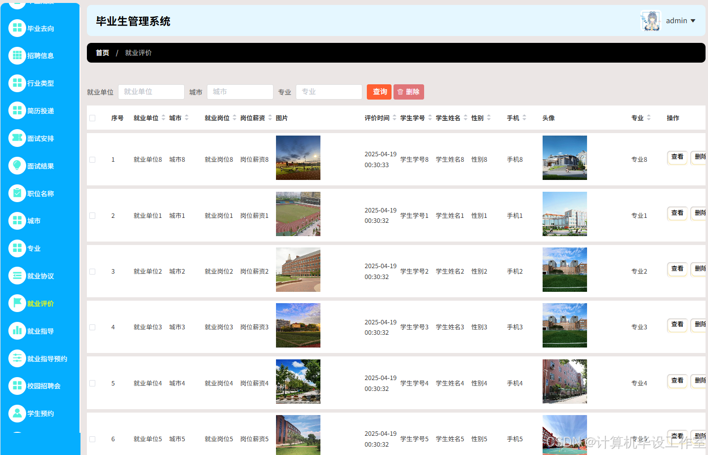 在毕业生管理系统开发完成之后,接下来的任务是检验其功能是否如预期那样运作。这意味着需要深入探查系统的每个角落,确保每项操作都能够精确执行,页面间的跳转流畅且无误,整个系统运行稳定且无任何错误提示。若发现错误,立刻进行修正;若遇到乱码问题,立刻清理。最终目标是确保该项目能够无障碍地顺利运行。