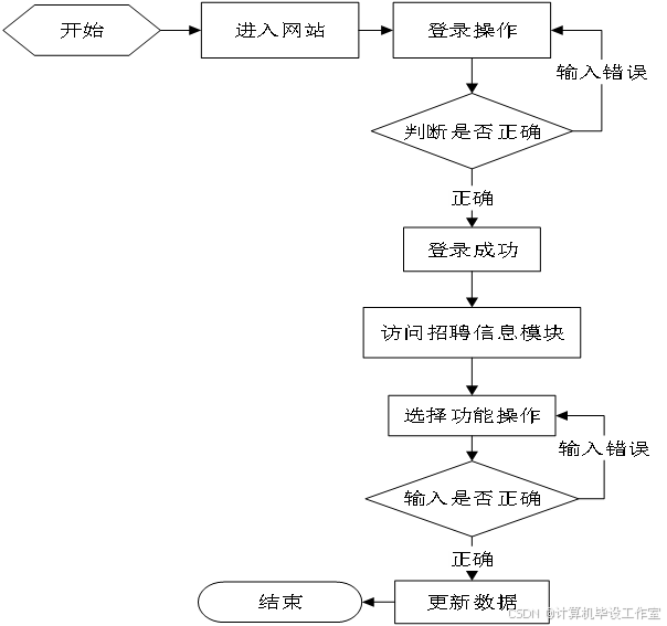 本系统招聘信息功能能够使用户查看其相关内容,由企业操作进行后端实现,如图3-7业务流程展示。