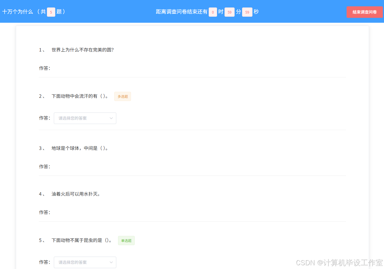 | 调查问卷 | 学生 | 通过菜单栏完成此模块的增改删功能需求 | 角色已登录 | 调查问卷内容符合要求,不违规 | 行为内容不能为空且符合规范 |