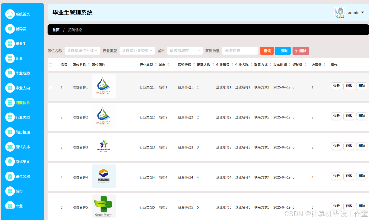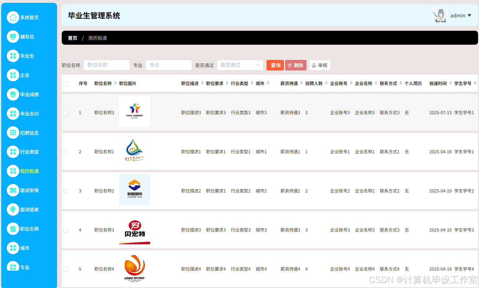 毕业生就业管理系统(源码+数据库+毕业论文+答辩ppt)java开发springboot+vue框架javaweb,可做计算机毕业设计或课程设计