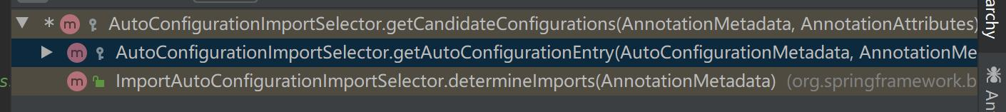 一个还是在AutoConfigurationImportSelector内,一个在ImportAutoConfigurationImportSelector内,而ImportAutoConfigurationImportSelector是AutoConfigurationImportSelector的子类。