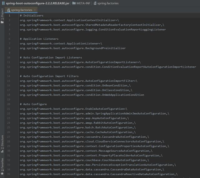 这里就要说一下Spring中的一个扩展机制了,这个扩展机制类似jdk的SPI,跟Dubbo的SPI机制也有点相似,就是在文件中配置接口的实现类,然后使用特殊的工具获取这些类的信息,然后实例化。