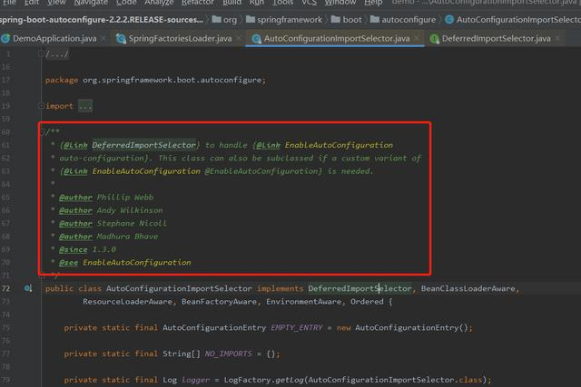 查看AutoConfigurationImportSelector的类注释信息,可以看到
