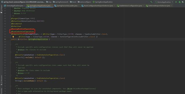 而EnableAutoConfiguration注解我们非常熟悉,SpringBootApplication注解继承了EnableAutoConfiguration注解。