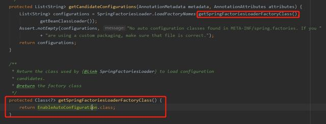 loadFactoryNames方法中,只有AutoConfigurationImportSelector.getCandidateConfigurations方法传入的是EnableAutoConfiguration类