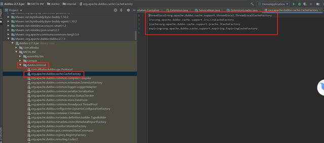 Dubbo的SPI机制中文件名也是接口名称,存放在META-INFO/dubbo.internal目录下,文件中会以键值对的形式进行信息存放,key为实现方式名称,value为具体实现类,使用ExtensionLoader工具类进行获取。