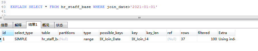 9、range:只检索给定范围的行,使用一个索引来选择行。