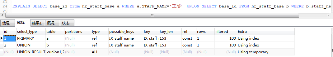 当通过union来连接多个查询结果时,第二个之后的select其select_type为UNION。