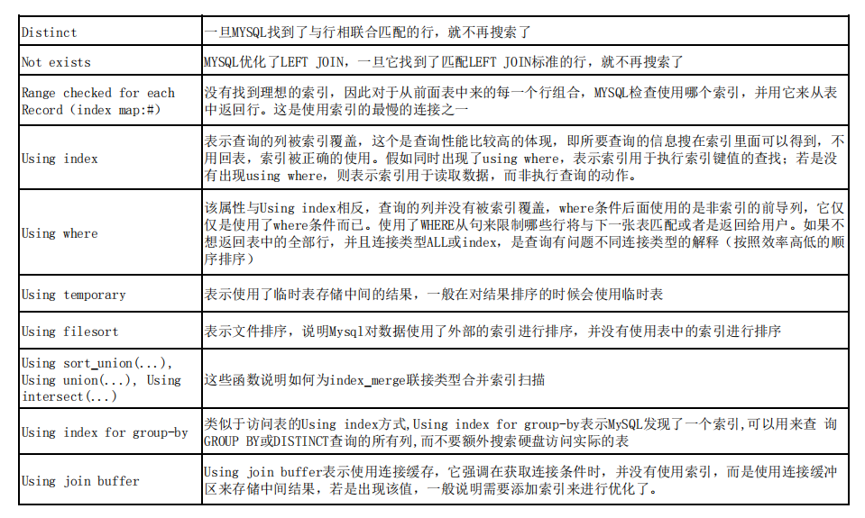 8、Using sort_union(…), Using union(…), Using intersect(…):这些函数说明如何为index_merge联接类型合并索引扫描