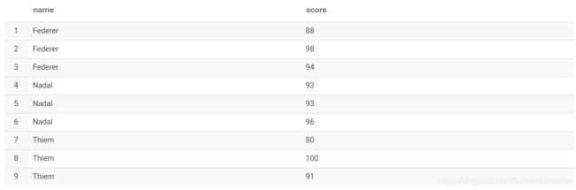 sum(score) over(partition by name order by subject rows between unbounded preceding and current row) as sum4, --分组内起始行到当前行的和