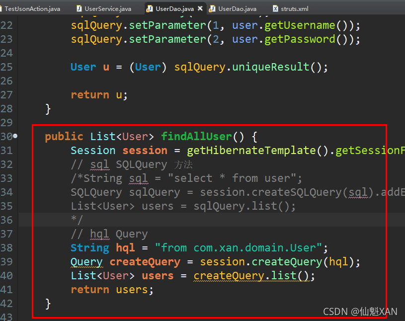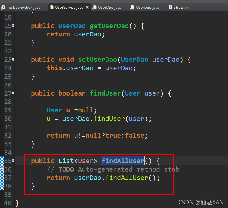 3、对应实现 UserService 和 UserDao 中的获取所有用户信息的方法