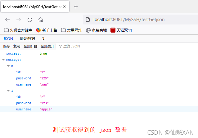 7、浏览器输入对应的网址,网页就返回 json 数据了