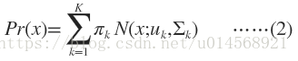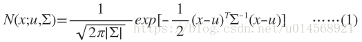 x是维度为d的列向量,u是模型期望,Σ是模型方差。在实际应用中u通常用样本均值来代替,Σ通常用样本方差来代替。很容易判断一个样x本是否属于类别C。因为每个类别都有自己的u和Σ,把x代入(1)式,当概率大于一定阈值时我们就认为x属于C类。