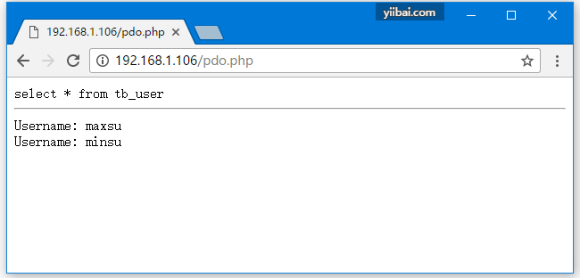 将文件:pdo.php 放到 /usr/local/nginx/html 目录下,打开浏览器访问测试结果如下 -