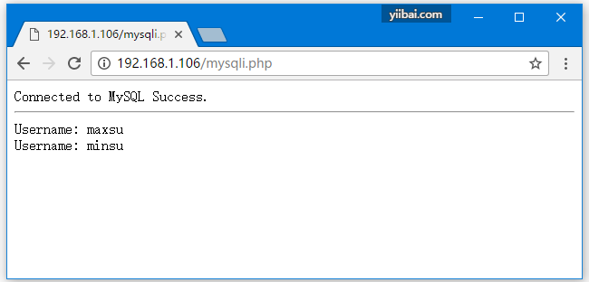 将文件:mysqli.php 放到 /usr/local/nginx/html 目录下,打开浏览器访问测试结果如下 -
