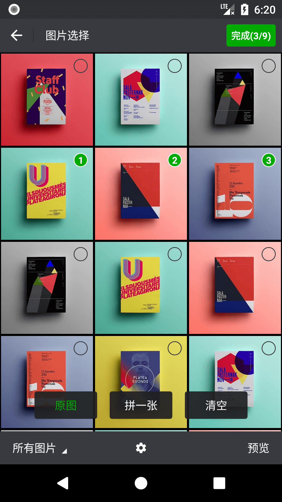 | 预览页单击缩放图片显示操作栏 | 拼图选择页 | 拼图选择页 |