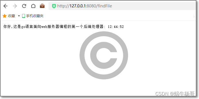 fmt.Fprintf(w, "你好,这是go语言面向web服务器编程的第一个后端处理器: %s", time.Now().Format("15:04:05"))