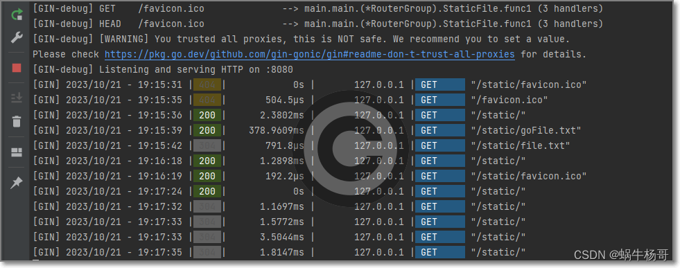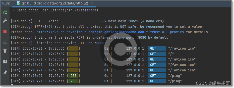 使用Gin框架启动一个Http服务器比较简单,使用gin.Default()初始化一个gin.Engine对象,后面所有的操作都是基于这个对象,如添加路由解析.
