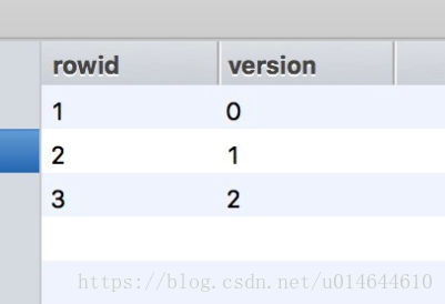 这个表是用来存储版本号的,现在表中的版本号(version)为0 ,rowid是升级文件“_”前面的数字。