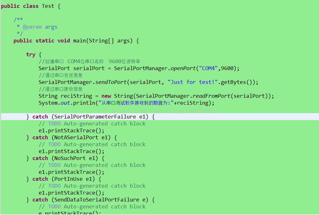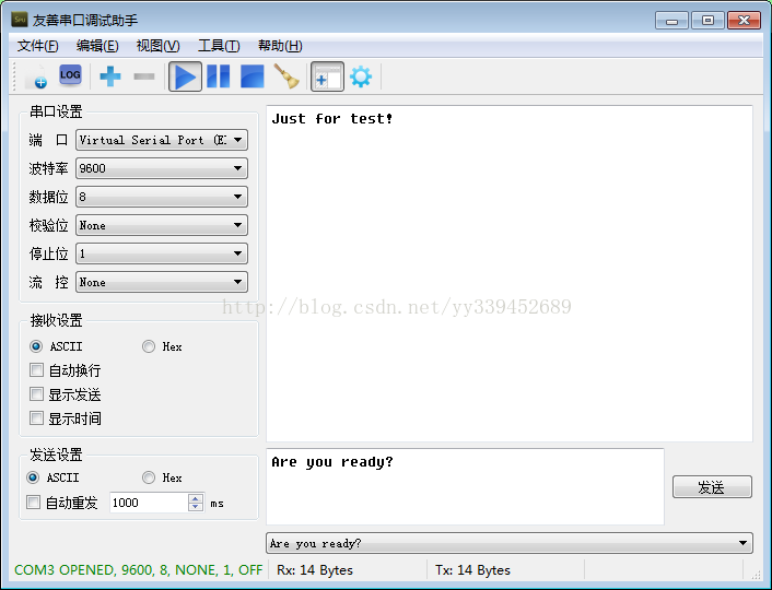 有了工具类之后,接下来我们就可以开始测试串口通讯了,如下: