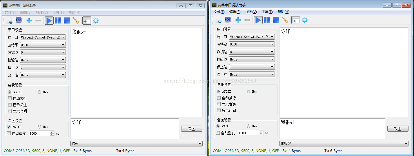 通过测试,发现我所添加的虚拟串口COM3和COM4是可以用的,那么接下来,我们就可以关闭其中一个,通过我们的JAVA程序来进行与该虚拟串口的信息交互了。