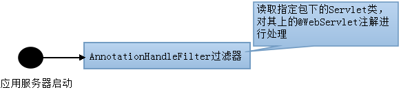 34 /* 过滤器初始化时扫描指定的包下面使用了WebServlet注解的那些类