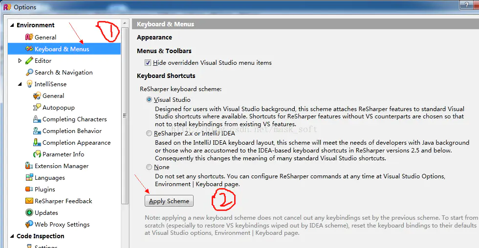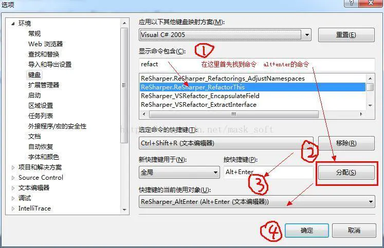 注意:这个时候,在VS界面里面按下ALT+Enter的时候,会进行提示,提示你选择VS的键盘,还是Resharper的,一定要选择Resharper的哦!!