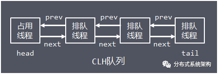 CLH的head节点保存当前占用资源的线程,或者是没有线程信息,其他节点保存排队线程信息