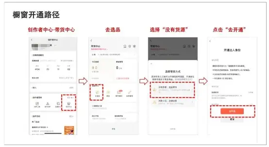 ● 选择带货方式:没有货源选品带货、关联小店、店铺自营;