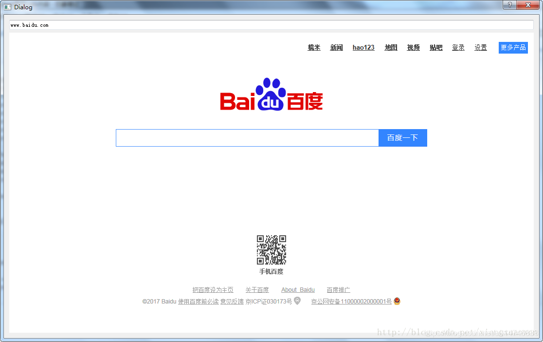 下面就使用QAxWidget来开发一个简单的web browser。该程序只有一个对话框,上面是一个地址框,下面是QAxWidget控件,在地址框中输入地址,单击Enter键,就显示该网址的内容。
