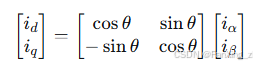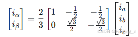FOC控制的核心是通过Park和Clarke变换将三相静止坐标系转换为两相旋转坐标系: