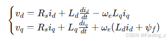 在FOC中,目标是通过控制定子电流矢量,使其与转子磁场正交,以最大化转矩。数学模型基于电机电压方程: