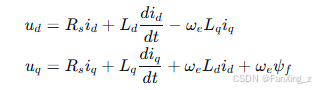 在同步旋转d-q坐标系下,PMSM的电压方程可表示为: