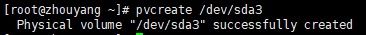 对刚刚新增的分区创建PV(pvcreate /dev/sda3):