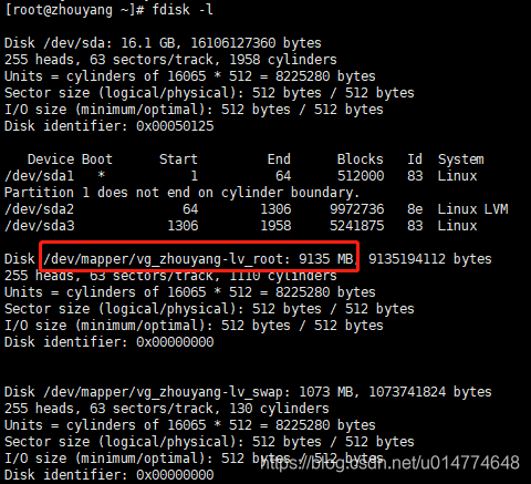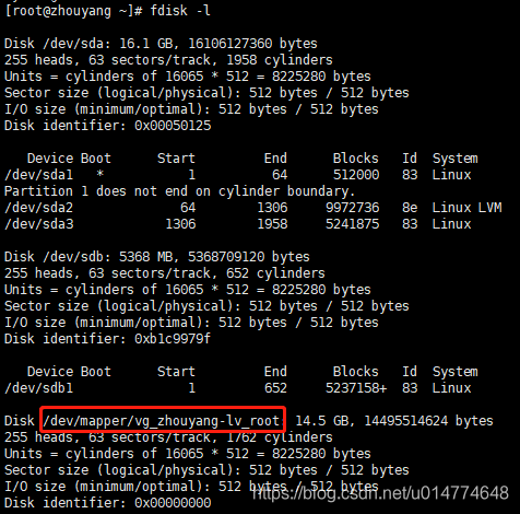 这个的vg组是lv_root前面的vg_zhouyang(组要根据实际虚拟机已有组确定,不是所有虚拟机都一样)。