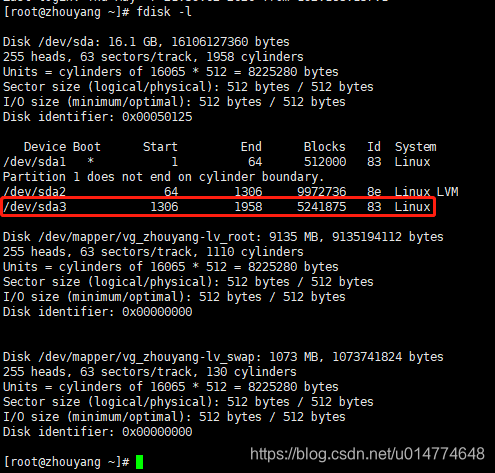 此时执行fdisk -l,就可以看到新增的分区/dev/sda3了: