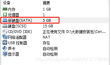 从上图可以看出5G的空间已经加到了硬盘中,而且/dev/sda这块硬盘的两个分区(/dev/sda1,/dev/sda2)大小都没有变化,这是因为新增加的空间需要分配到分区中才行。