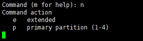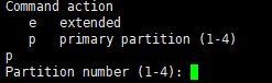 出现两个选项,一个是e(扩展分区),一个是p(主分区),这里选择p: