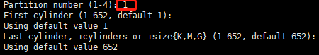 然后让输入起始扇区和结束扇区,这两个都直接回车默认就行(默认是从上一个分区结束的位置开始,到磁盘最大扇区为止)。