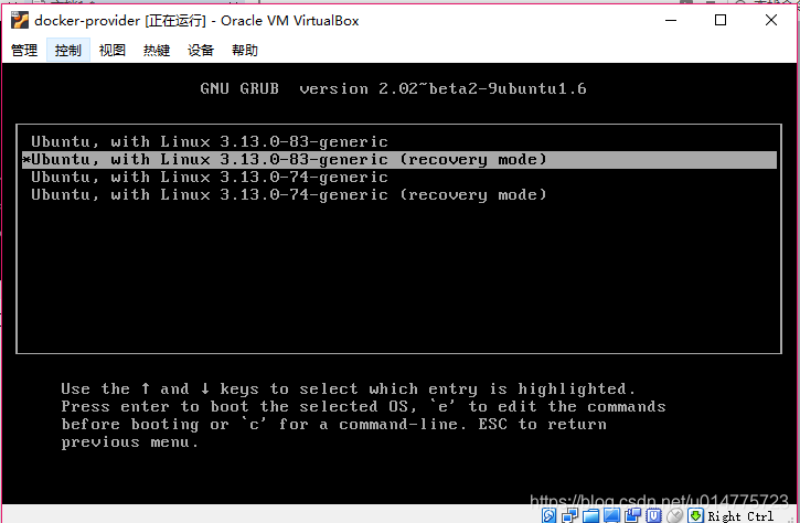 1.开机时,按Esc键,进入root模式,选择第二个Advanced options for Ubuntu,按enter