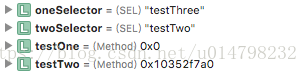 1):53,54,55,56这四行代码就是获得了两个Sel选择子,两个Method对象,值得注意的是,在当前这个类中,并没有testThhree这个已经实现的实例方法,只有testTwo的实例方法,所以