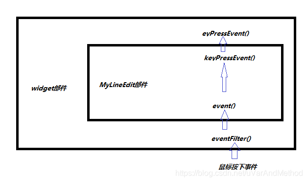 - 重新实现部件的paintEvent(),mousePressEvent()等事件处理函数。