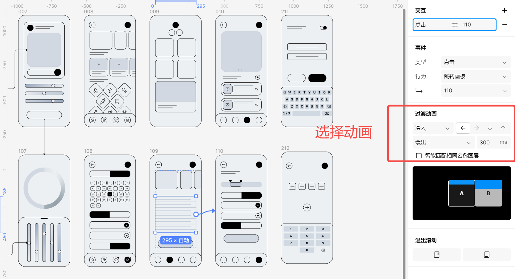 完成触发条件与目标设定后,下一步就是为交互过程添加转场动画。转场是原型动效的“视觉语言”,它让页面切换不再生硬,而是以自然、连贯的方式呈现。常见的转场效果包括滑动、淡入淡出、缩放、翻转等,不同的转场会带来完全不同的感受。