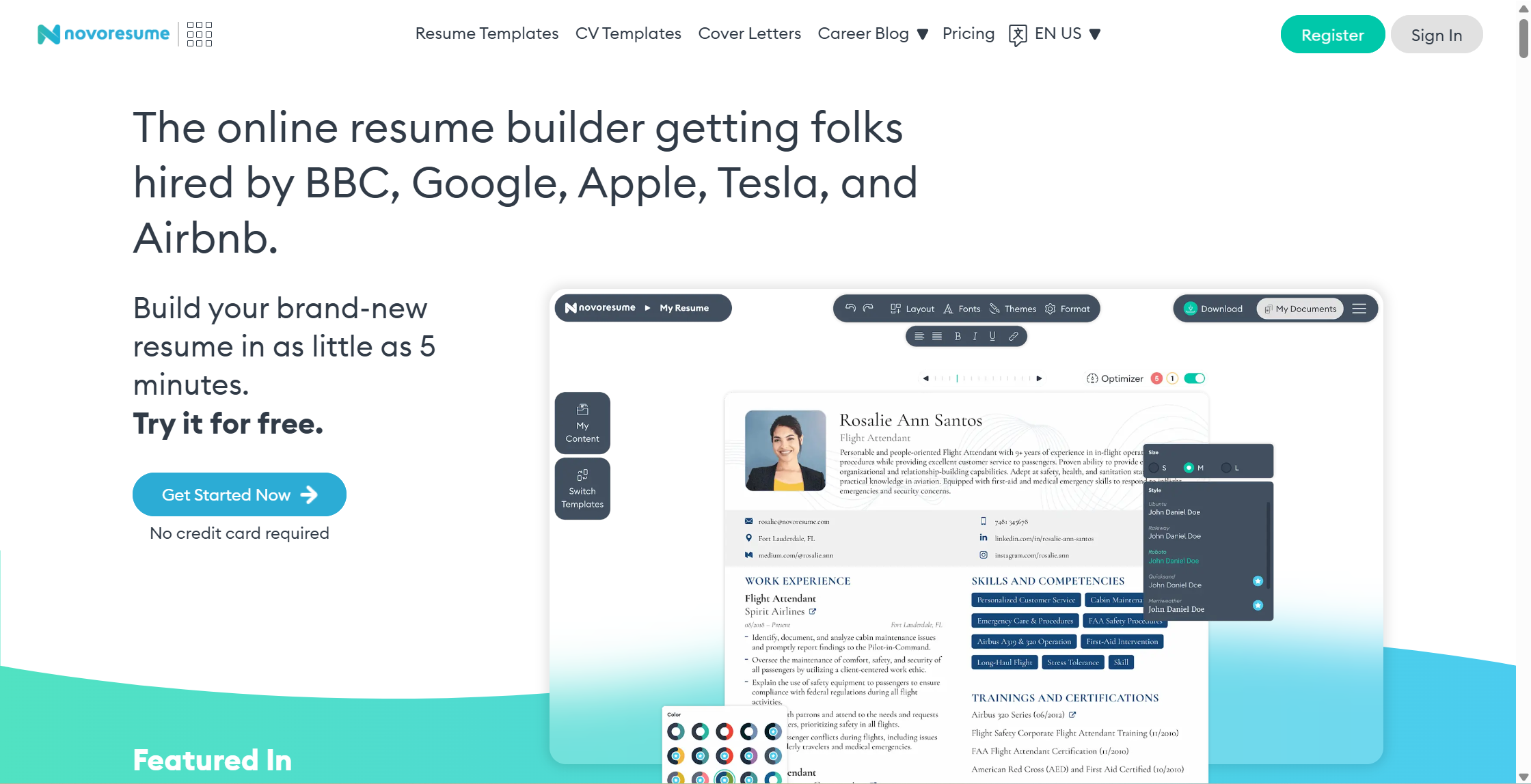 Novoresume 的设计理念来自招聘人员的反馈,是一款注重内容优化的免费简历设计网站,特别适合初入职场或缺乏经验的求职者。