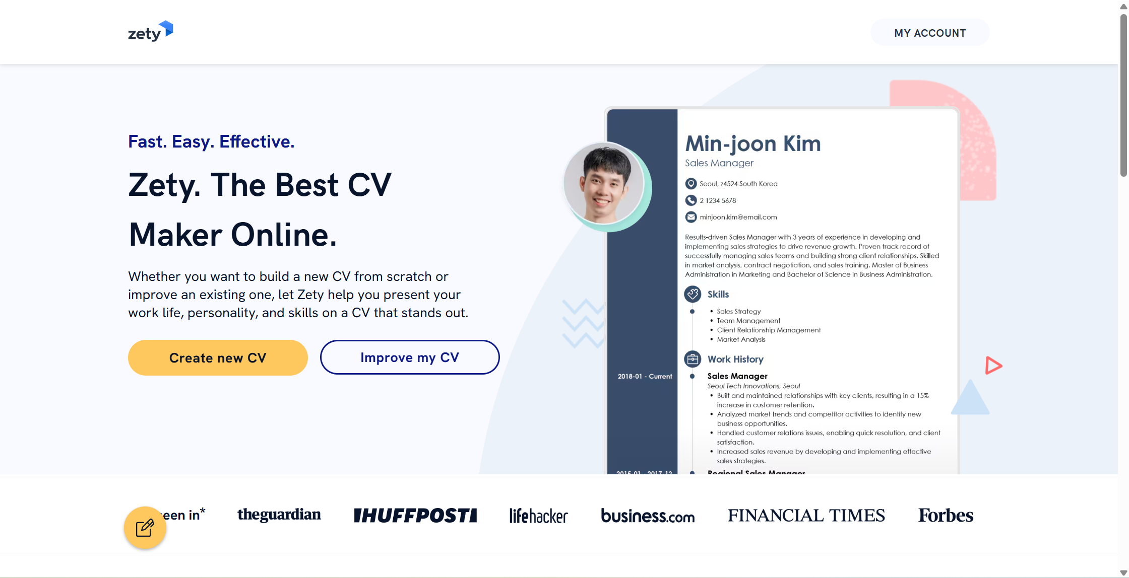 Zety 是一款功能完善的免费简历设计网站,强调与行业的契合度。对于需要针对不同岗位快速调整简历的用户,Zety 提供了灵活的支持。